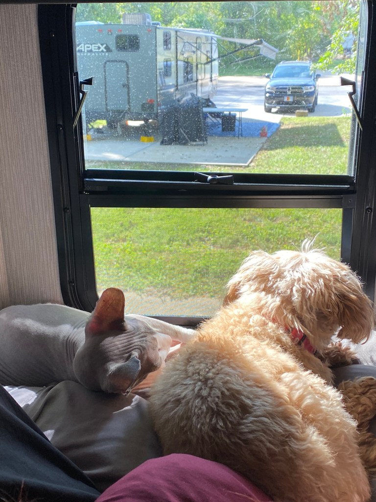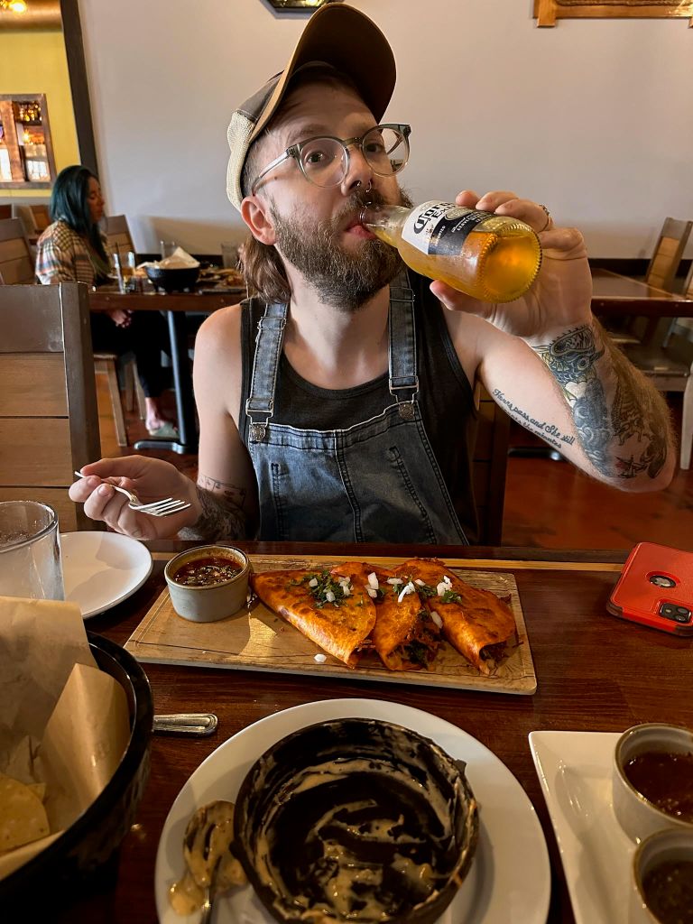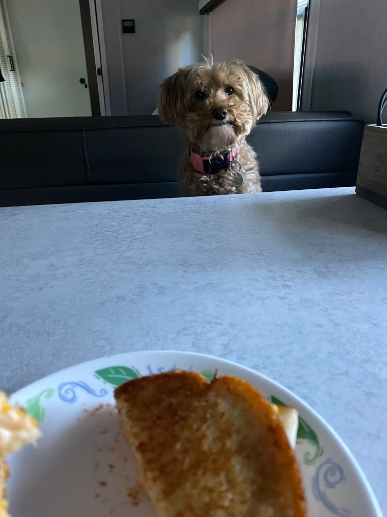 Hello there (in Obi-Wan Kenobi voice) and welcome back to the blog for another week’s rundown! It felt like a very busy week but that’s because Brittany worked a lot and then did some traveling, and I was busy doing classwork for college. We did get to go out to brunch at a great spot out here called Rated Test Kitchen! It was a 4-course brunch and it was all amazing. They did such a good job, and we got to rate the presentation, taste, and overall how good the dish was for them! Highly recommend if you’re in the area you stop in for a good date day! We also knocked a Mexican restaurant off of our list called El Milagro Azteca where I had birria tacos that were wonderful! Life is busy but life is really nice out here. We also got matching tattoos of fried raviolis (STL is known for them)! It’s a good combo of reminding me of home while at the same time being similar to Maryland so we don’t feel too out of place. As always brunch and dinner are great dates, but we always love coming home to the kids in the RV. I built them a new scratching house this week, which is always a task with the twins trying to help their dad out! Lunch dates with Zoey are a good midday treat for me to break up my day!