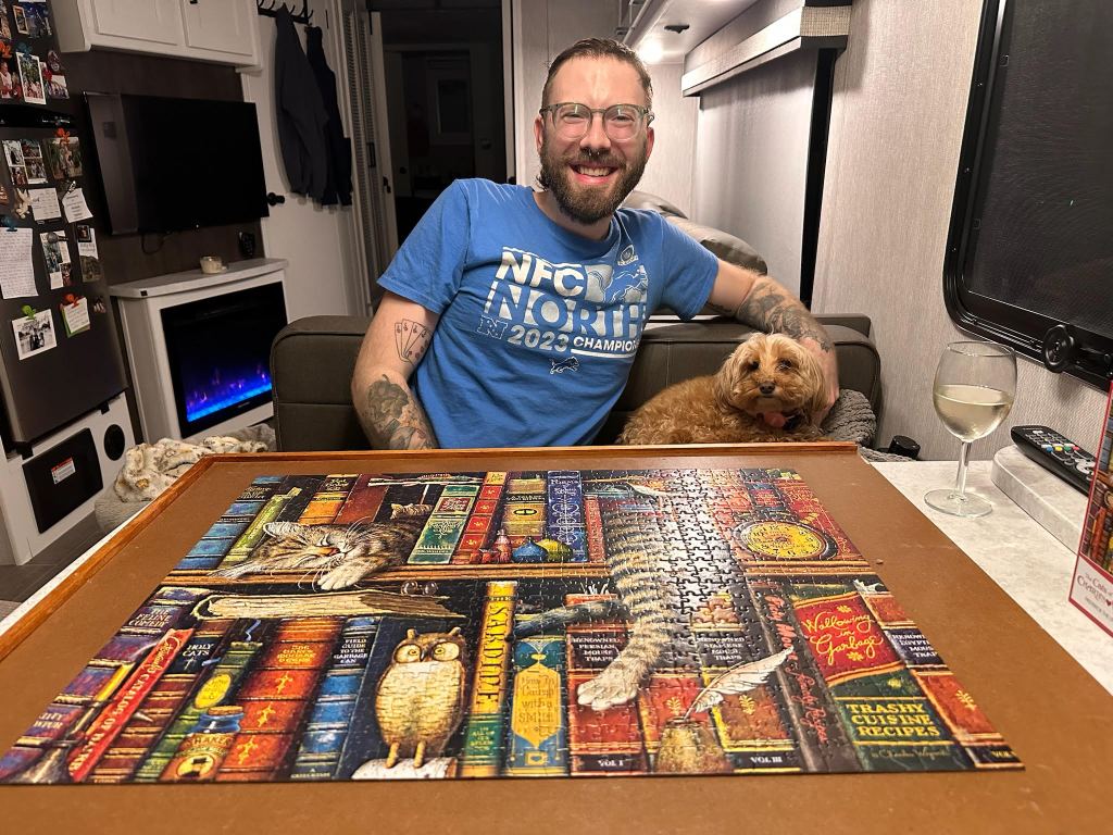 Before I get into a little story about your favorite couple I’ll recap our week! This week we stayed home on Brittany’s days off and got to watch the debate, that was interesting, and the VMAs! We finished our puzzle while watching the debate and Darcy even helped us take it apart at the end!