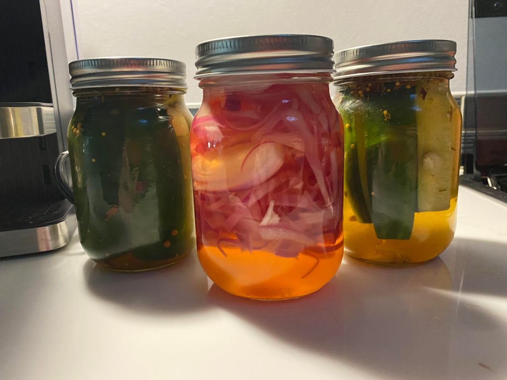 This week has been a bit rainy and wet which is nice for the grass but not for trying to keep mud and dirt out of the RV. Zoey loves it though! She loves walking through tall grass, which for her is a few inches, and getting her belly all wet before coming inside and trying to shake it off before I can dry her. This weekend we were able to get out to the Gin Room for great gin-based drinks, Pork Belly, Whipped Feta, and Gnocchi (Brittany’s first-time having Gnocchi)! It was so good! The drinks were amazing, and the food was spectacular! For sure a place I would go back to. I also did some pickling, and I fixed Zoey’s favorite toy (Bunny) under her watchful eye! The cats did a lot of watching out the front of the RV and sleeping as usual. All around a pretty solid week for us!
