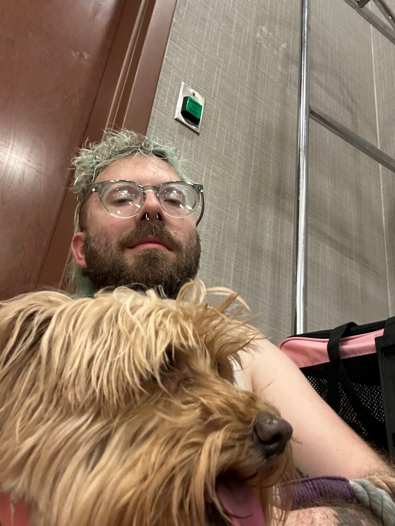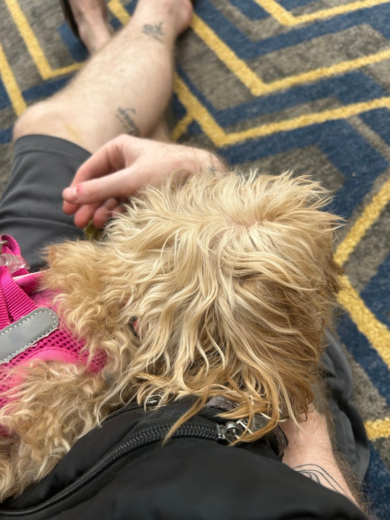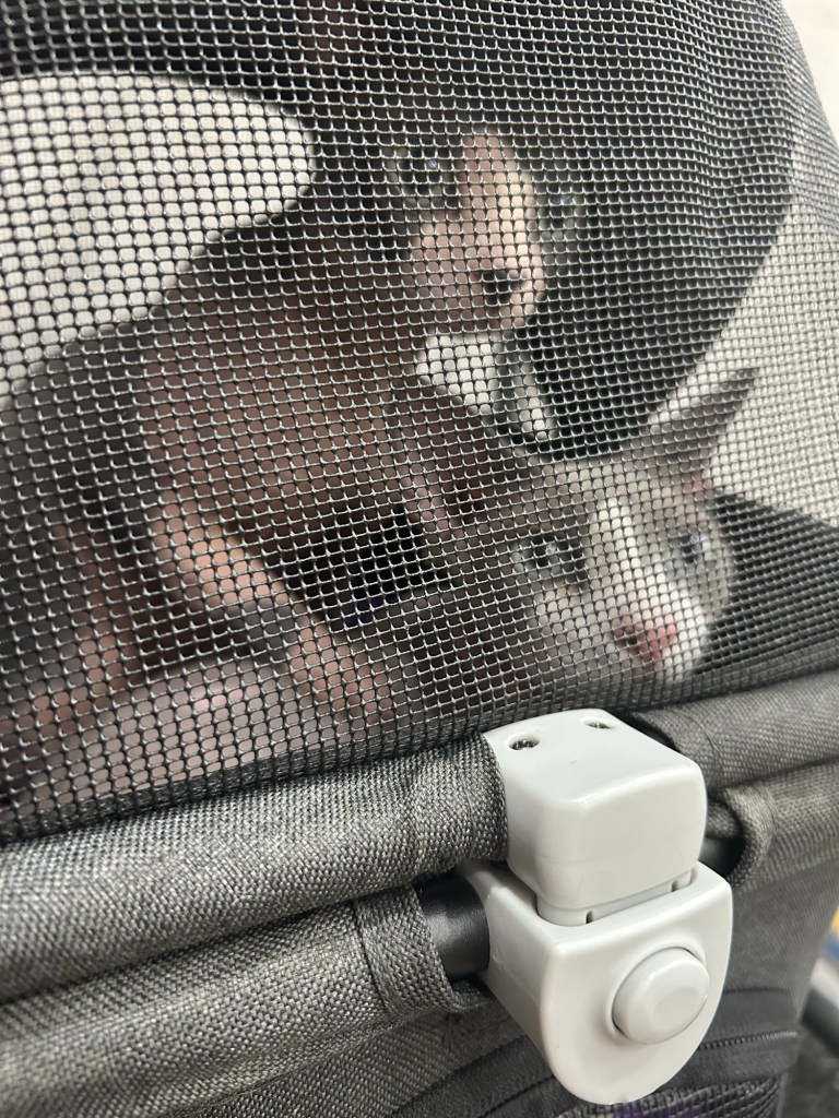 Friday we brought the slides in again because it was supposed to be gusts of up to 50 mph. Around 4 in the afternoon there was a tornado watch placed on our area until 11 at night. I drove Brittany to work and watched for the possibility of a tornado. Around 730 I started calling hotels to find somewhere I could take all 5 of our kids if I needed to get out of the RV quick but everything was still looking clear. 8 rolls around and the storms, and possible tornadoes, shifted towards us so I packed up the kids, threw them in the car, and drove south since it was looking g horrible to the north. As I get to the hotel the storms shift more and now the possibility of a tornado had moved to the town I’d just showed up in! After getting pelted with ping-pong ball to tennis ball sized hail, while covering Zoey and parking the car, I finally made it into the ballroom (no windows) of the hotel and tucked into the back corner with the family. Luckily Brittany stepped into the break room to talk me through everything and keep my head level the whole time. One tornado on the outskirts of the town I was in. We sat in that corner for 3-4 hours and then finally went back to the RV and were very excited to see that there was no damage and it’s still standing. It was a pretty wild Friday night for us!! The kids did great sleeping in their carriers in that room and everybody was very excited to see hairless cats in real life. Now back to the grind!