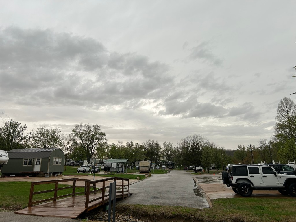 This was another long week where Mother Nature decided to keep us on our toes aka The Traveling Albach special. We’ve dealt with a lot of weird weather that the locals of the places aren’t used to while traveling in the RV. The flooding last time we were here, the heavy snow in Tennessee, the tornado in Arnold and now we’ve had another tornado warning and almost another flood! Wednesday we had to leave the RV to go sit in a hotel meeting room with the kids again and then Friday we got so much rain the park tried to flood again.