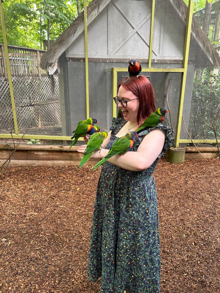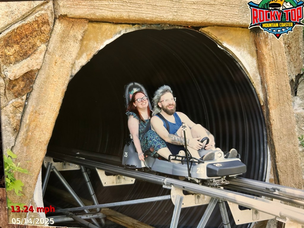 We got to make a stop, probably our favorite stop on the trip, at Pigeon Forge and see Parrot Mountain, ride the Rocky Top Mountain Coaster, and go to the Dixie Stampede! It was so much fun and a perfect little adventure for us. Our RV park in Texas had a bunch of farm animals which was great. A donkey and two cows got out so I got to help move them back to their pen!